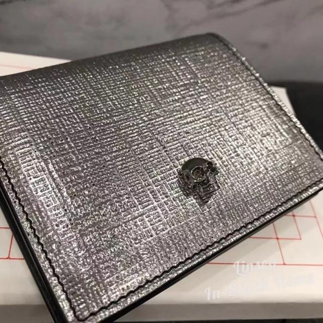 Alexander McQueen metallic bi-fold wallet 真皮銀包