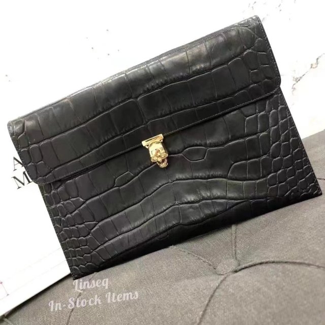 Alexander McQueen croc-embossed leather clutch 真皮手包