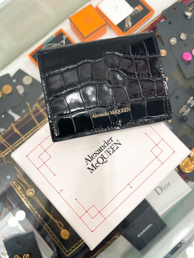 Alexander McQueen croc bi-fold wallet 短銀包