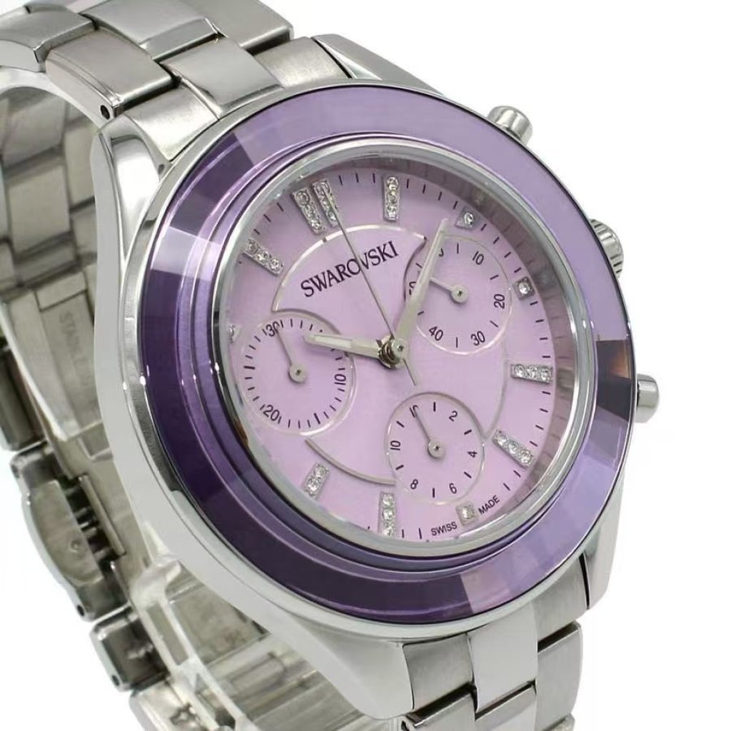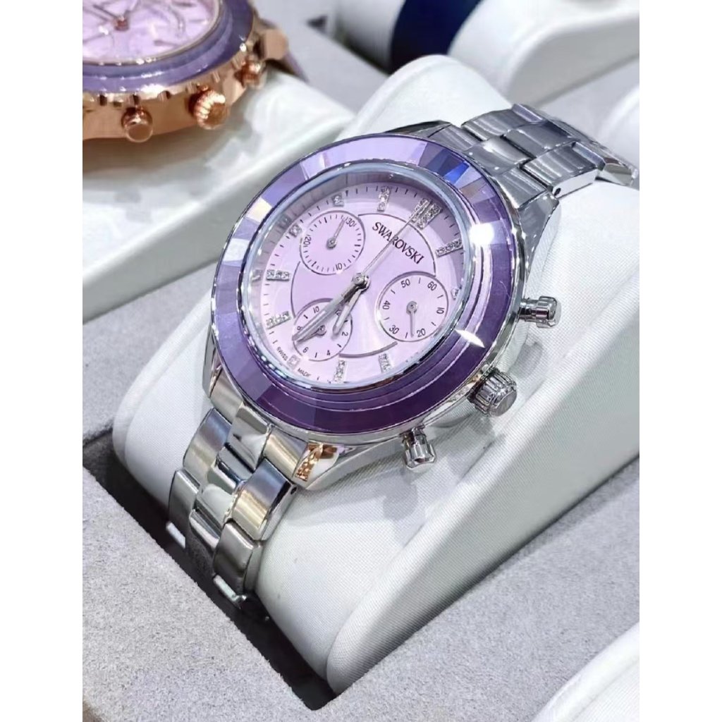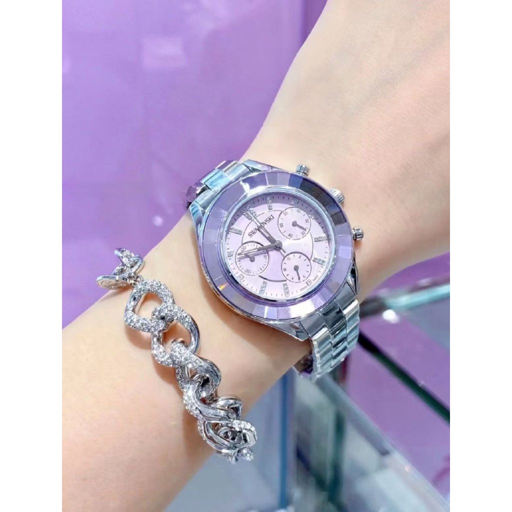 夢幻紫調切割水晶錶圈,陽光下折射出滿滿閃耀光芒!配上施華洛世奇水晶,精緻到極致!三圈計時功能,又靚又夠實用,日常返工、旅行都啱用!紫色上手顯白又顯氣質,我地門市亦可以現場幫忙改錶帶長短💜