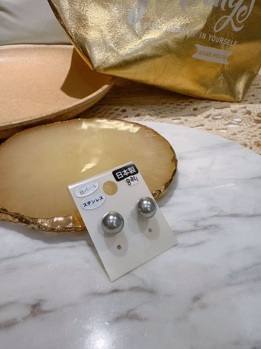 A48 8mm grey pearl earrings