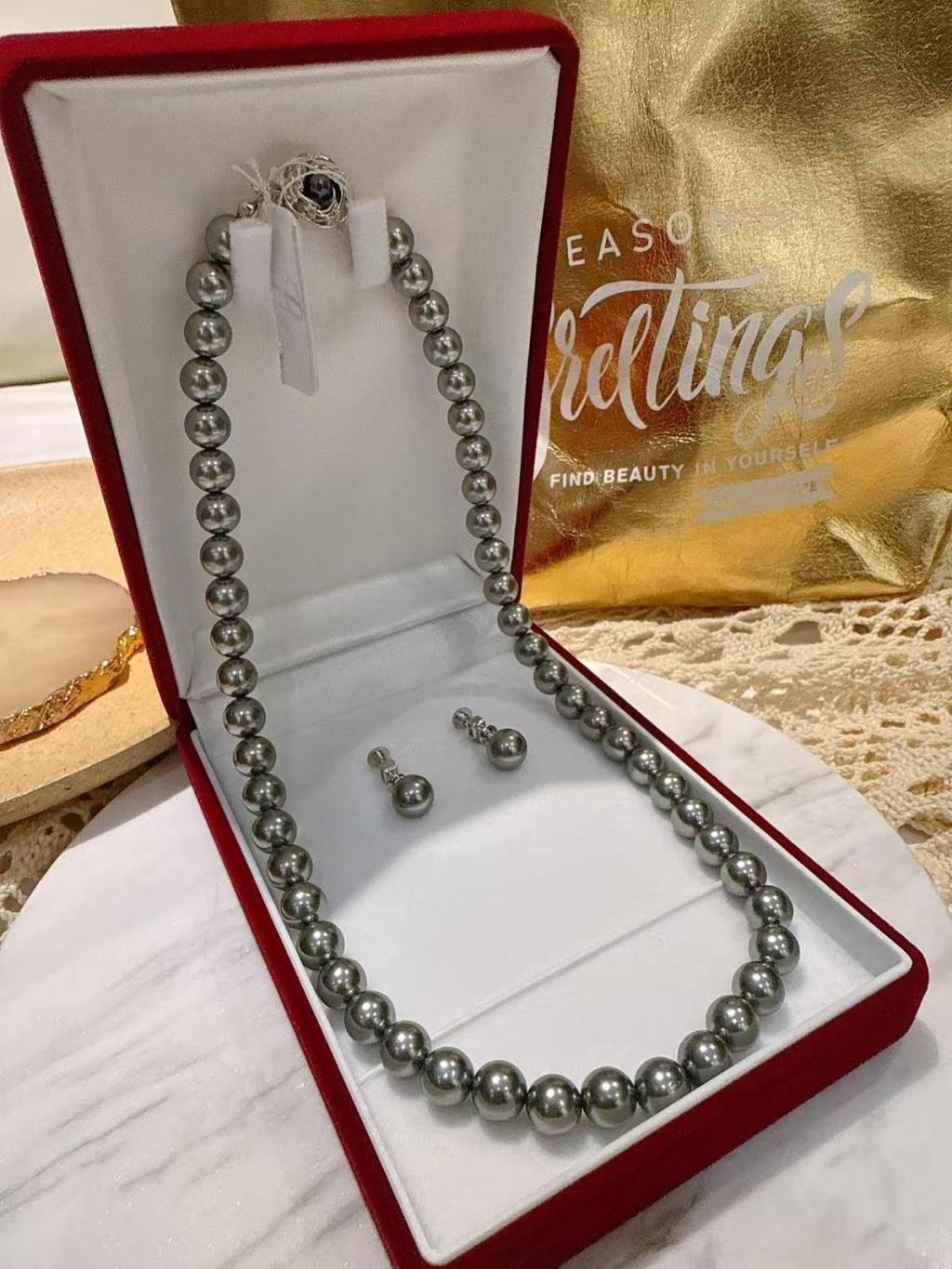 A12 Grey Pearl 8mm 42cm 耳夾套裝 (耳環+頸鏈)