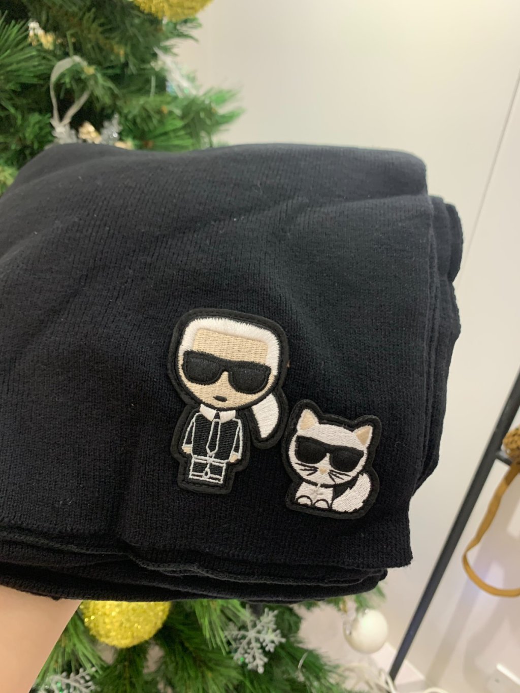 KL 頸巾-冷-刺繡老心&貓-黑